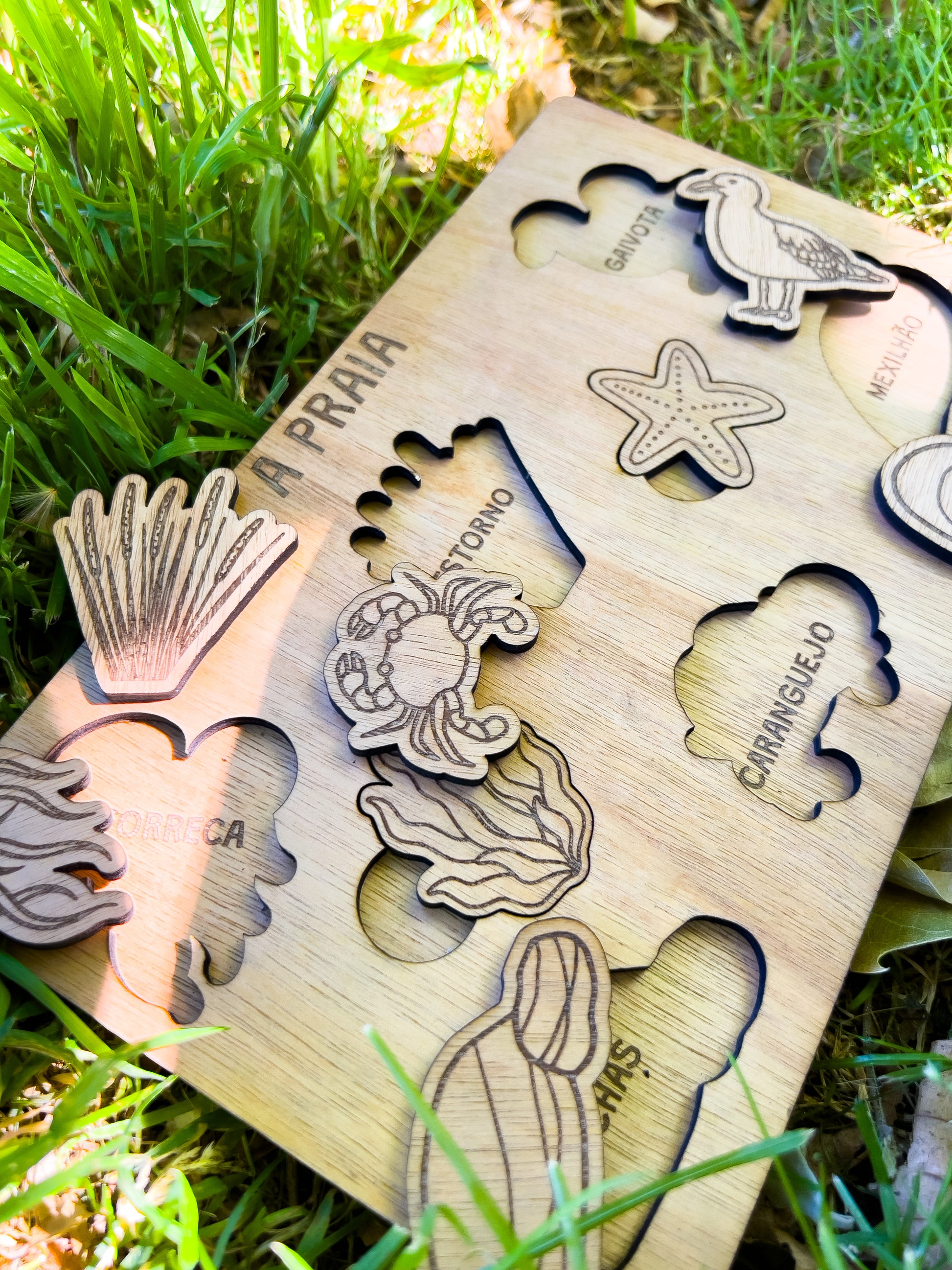 Este puzzle convida as crianças a entrarem nesse mundo costeiro — observando, nomeando e explorando alguns dos elementos que encontramos junto ao mar: