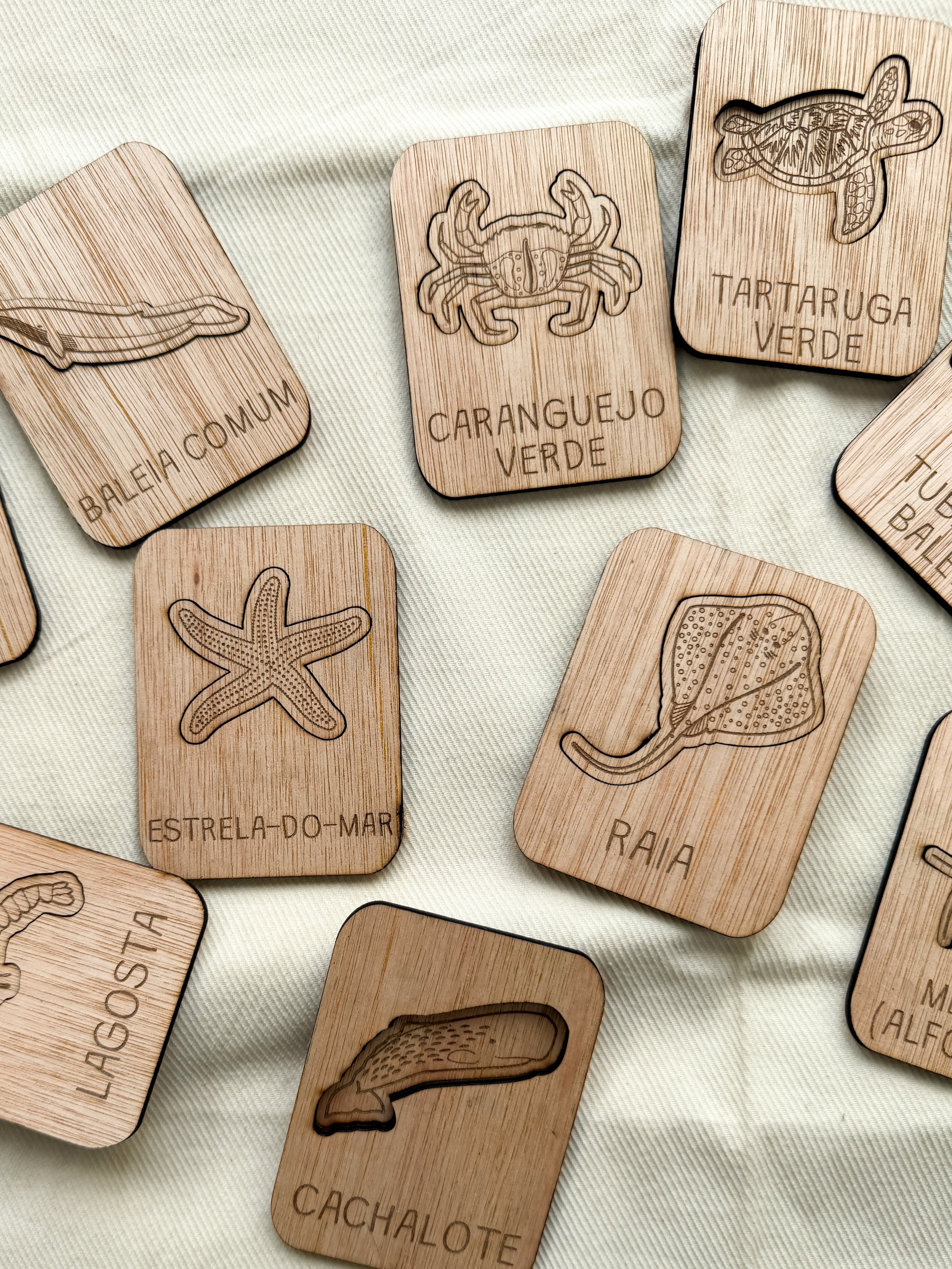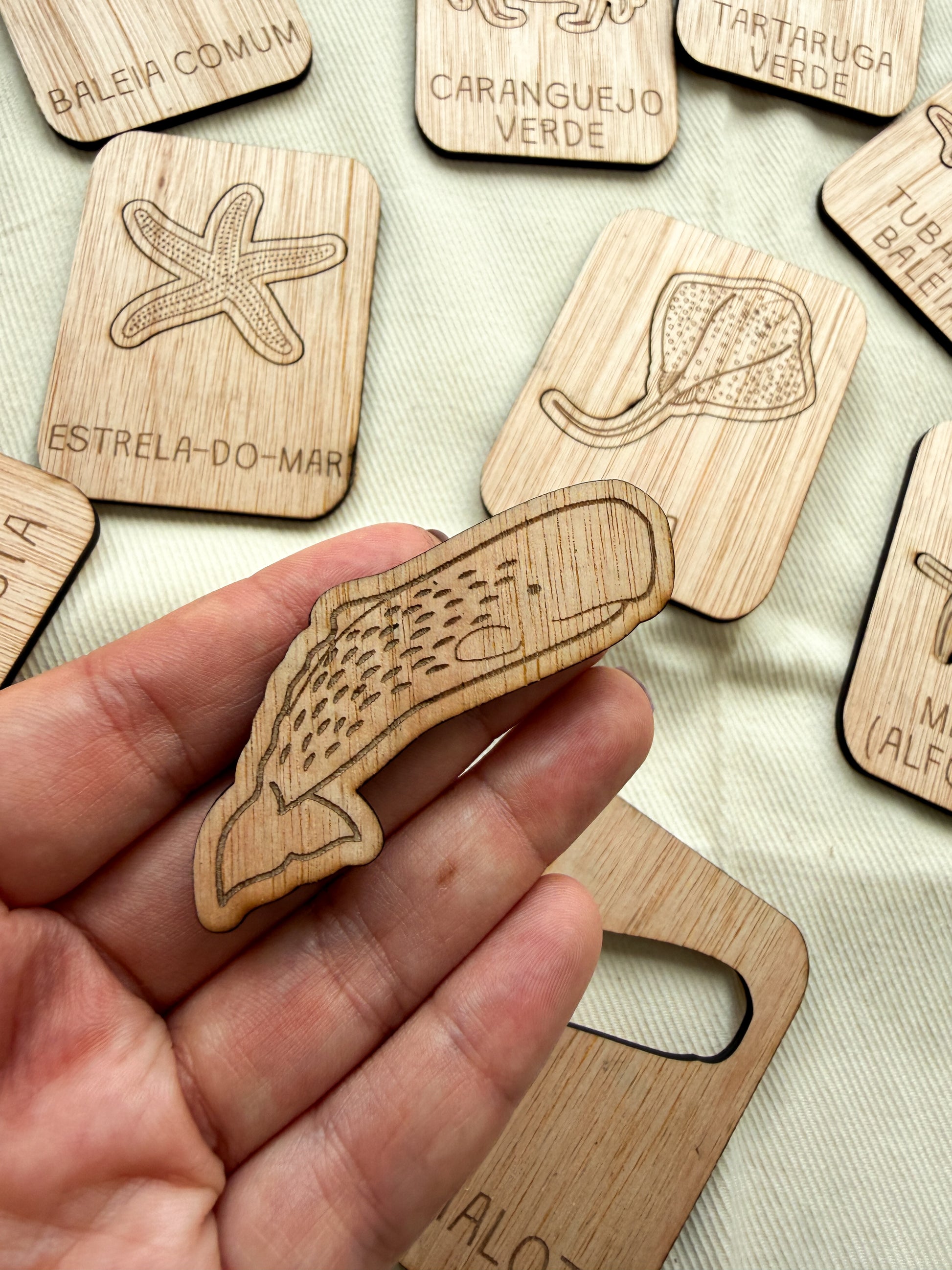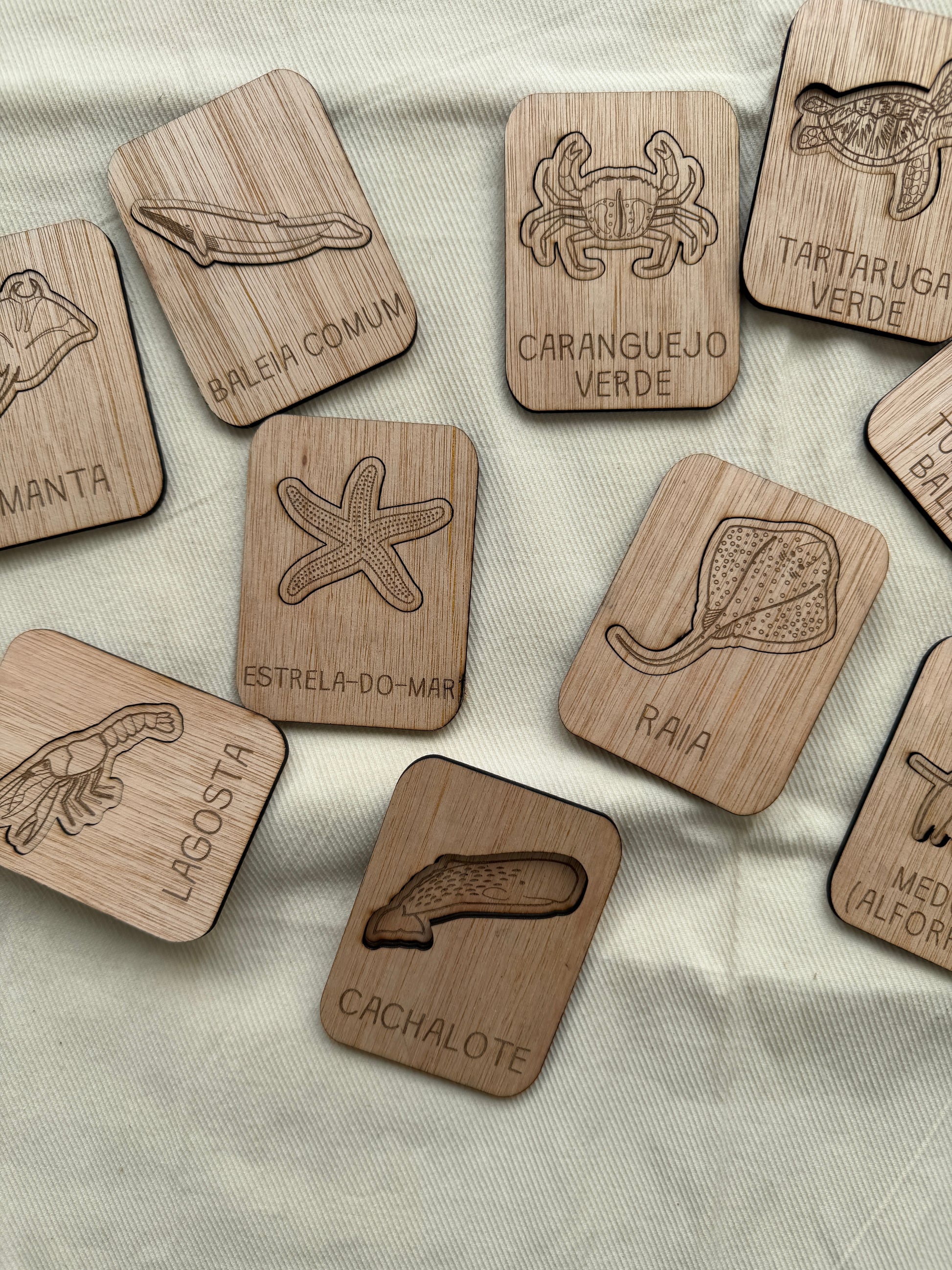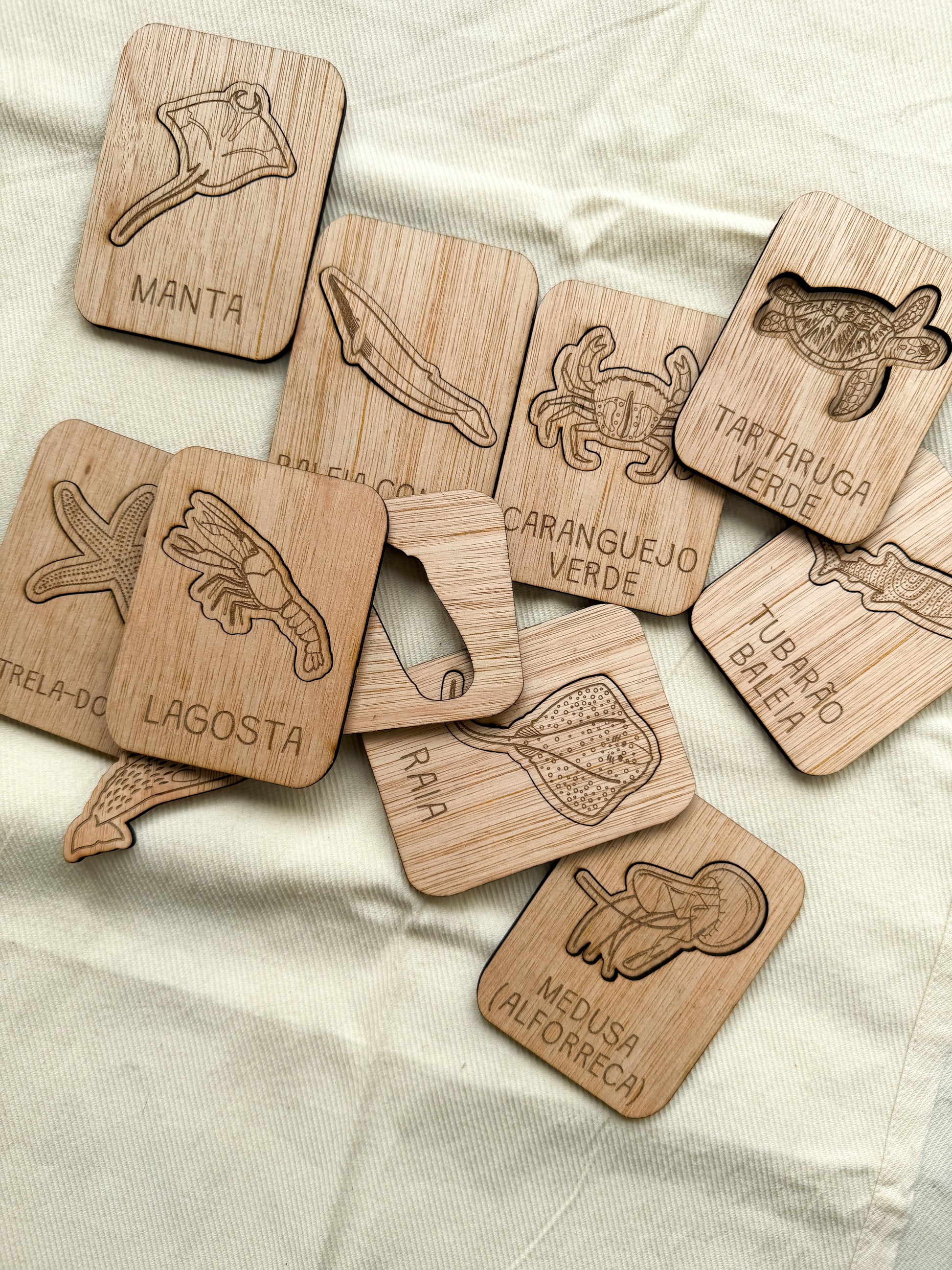 Estes puzzles em madeira apresentam algumas das espécies mais emblemáticas do oceano — como a tartaruga-verde, a raia, o tubarão-baleia ou a medusa — promovendo a observação, o reconhecimento e o vocabulário científico.